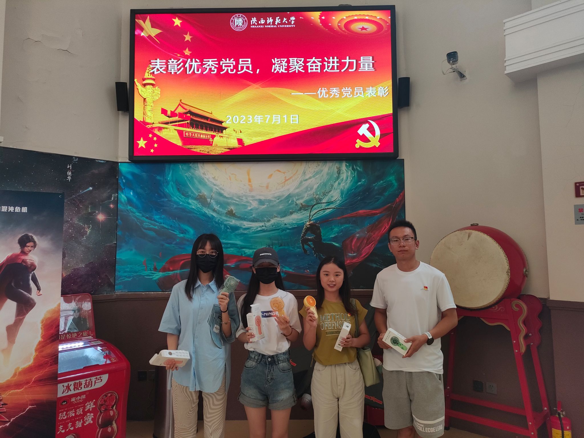 观影结束后,党支部书记代表魏佳聪为各支部优秀党员颁发了纪念品,其中承载着Bsports对广大党员深厚的希望,希望党员能继续坚守本心,发挥党员先锋模范带头作用,引领广大莘莘学子想着更好的目标前进。
