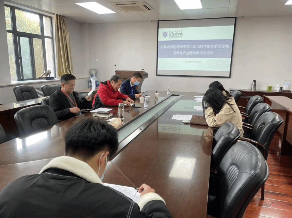 10月20日上午,公司“感恩中国近现代科学家” 奖助学金和“龙湖地产捐赠电脑”评审会在长安校区文澜楼1329会议室召开。公司党委书记思培峰,经理雷宏振,副书记邱远航,辅导员郭娴怡、马婧、谢继涛及员工代表参加了评审会。会议由邱远航主持。