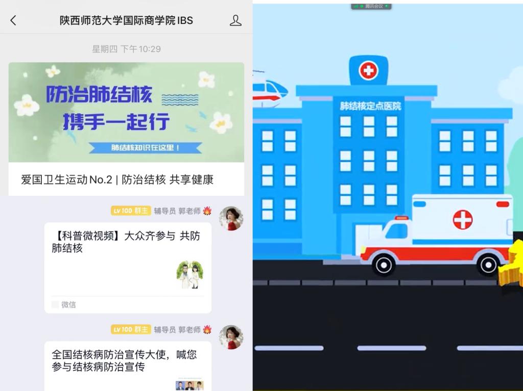 各年级辅导员通过在年级群发布结核病防治科普文章,在公司官方公众号发布推文“防治结核 共享健康”,组织员工线上观看结核病防治科普知识等方式,进行结核病防治的宣传教育和知识普及,教育引导员工清晰认识预防结核病的重要性和必要性,号召同学们提高结核病预防意识,养成健康良好的卫生习惯,提高个人身体素质和健康水平。