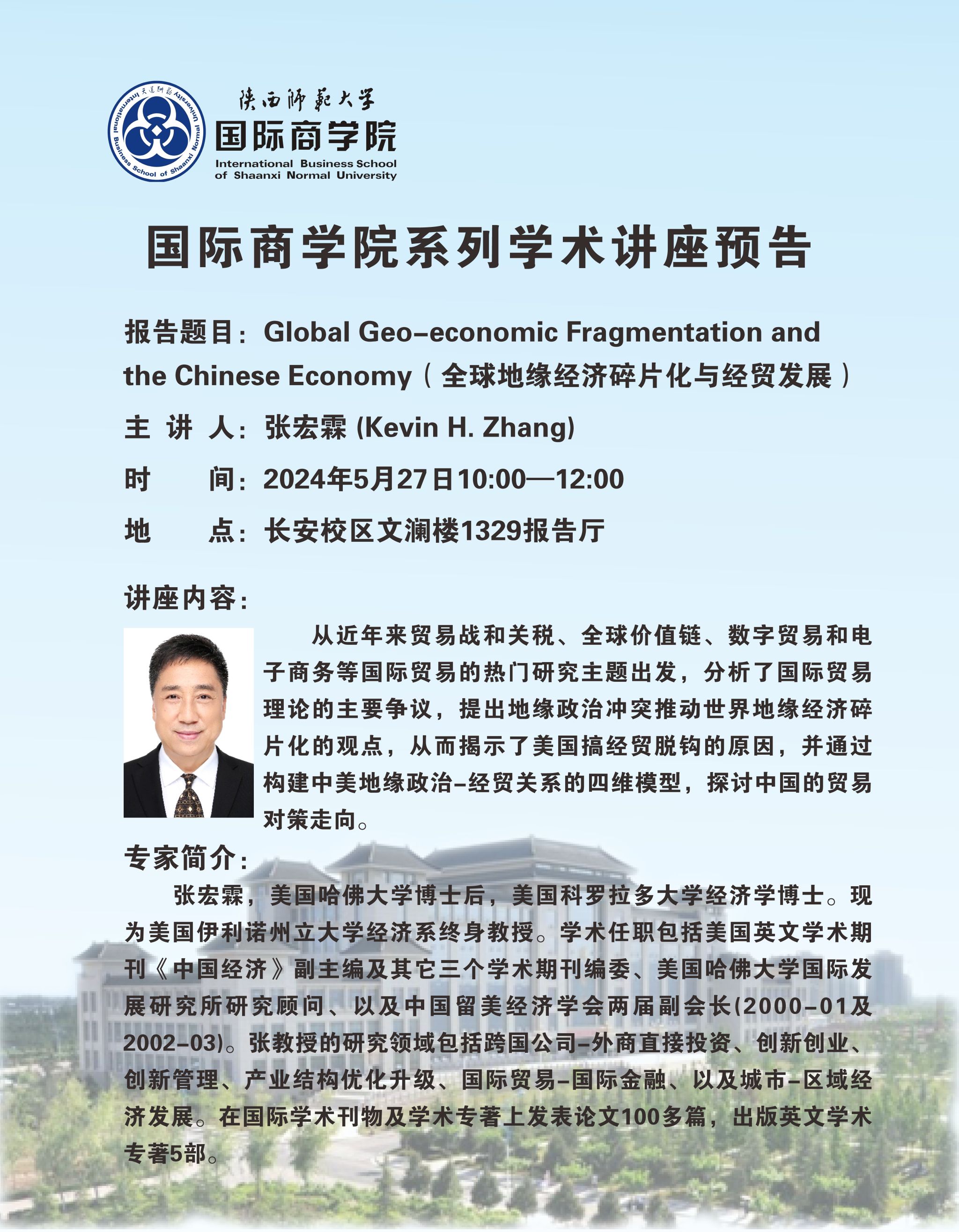 学术讲座预告——Global Geo-economic Fragmentation and the Chinese Economy(全球地缘经济碎片化与经贸发展)
