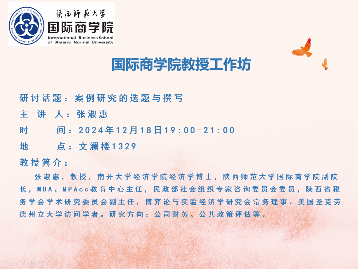 Bsports必一体育教授工作坊——案例研究的选题与撰写