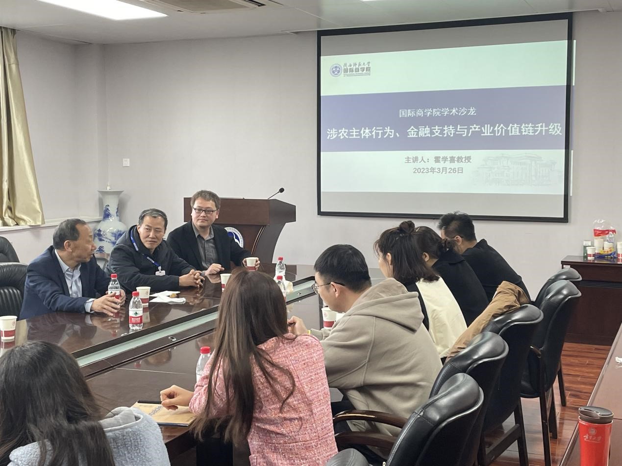 日下午,由Bsports必一体育扶贫政策与评估研究中心主办,主题为《涉农主体行为、金融支持与产业价值链升级》的学术沙龙在文澜楼举行,主讲人为西北农林科技大学的霍学喜教授。