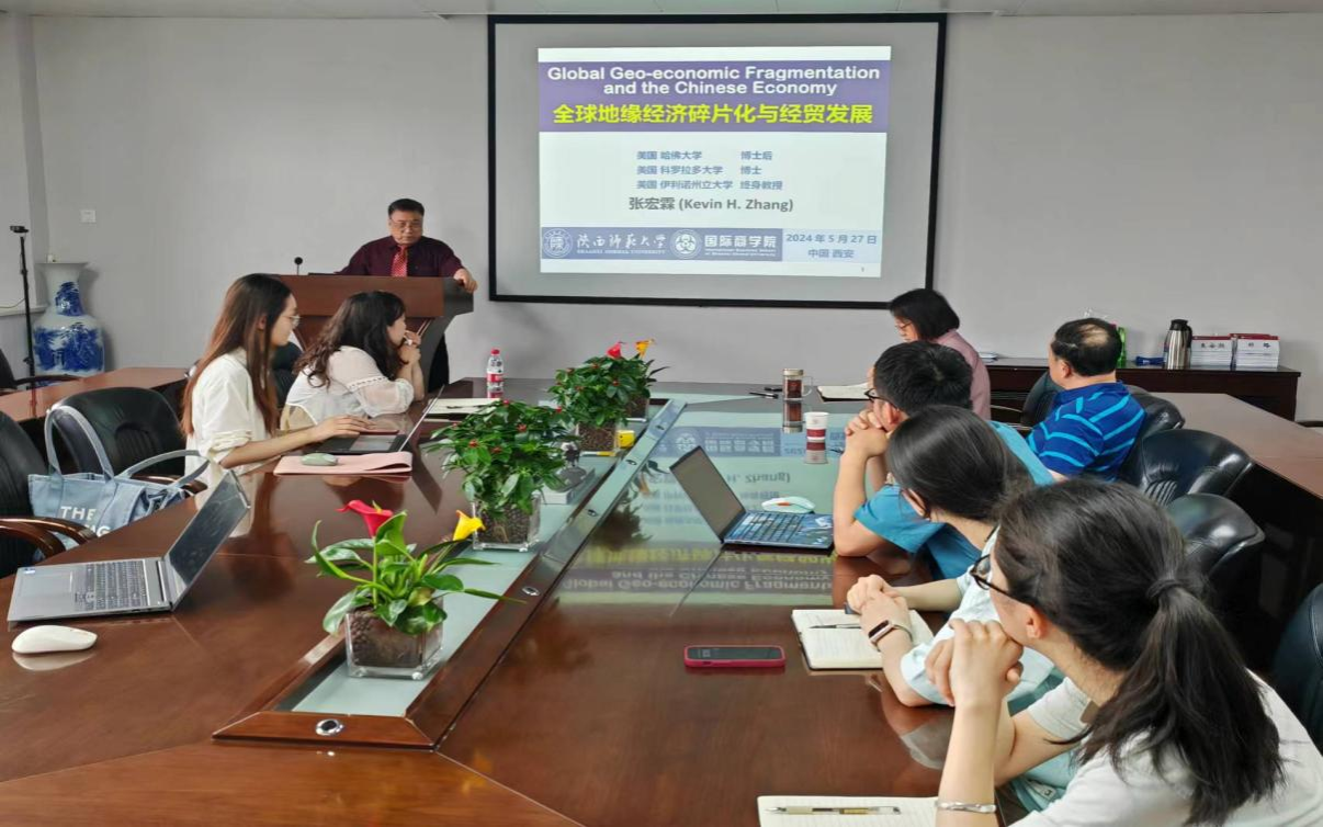 2024年5月27日上午,公司特邀美国伊利诺州立大学经济系终身教授张宏霖,在长安校区文澜楼1329报告厅举办了“Global Geo-economic Fragmentation and the Chinese Economy”的专题学术讲座,部分学院师生和经理雷宏振教授到场学习交流,讲座由副经理张淑慧教授主持。
