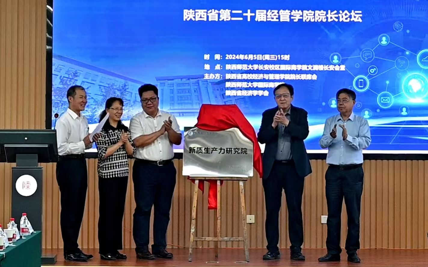 公司副董事长杨祖培代表公司向参加论坛的嘉宾与经理表示了热烈地欢迎和衷心地感谢。她简要介绍了集团和公司的发展情况,希望通过此次论坛的深入研讨和交流,为推进智能化应用人才培养建设创新提供有益的借鉴和指导。开幕式上,中国科公司大学教授、《科研管理》主编穆荣平,陕西省社科联社会组织管理部部长张金高,陕西省经济学会会长、西安邮电大学数字经济研究院经理张鸿,公司副董事长杨祖培为陕西省经济学学会“新质生产力研究院”揭牌。