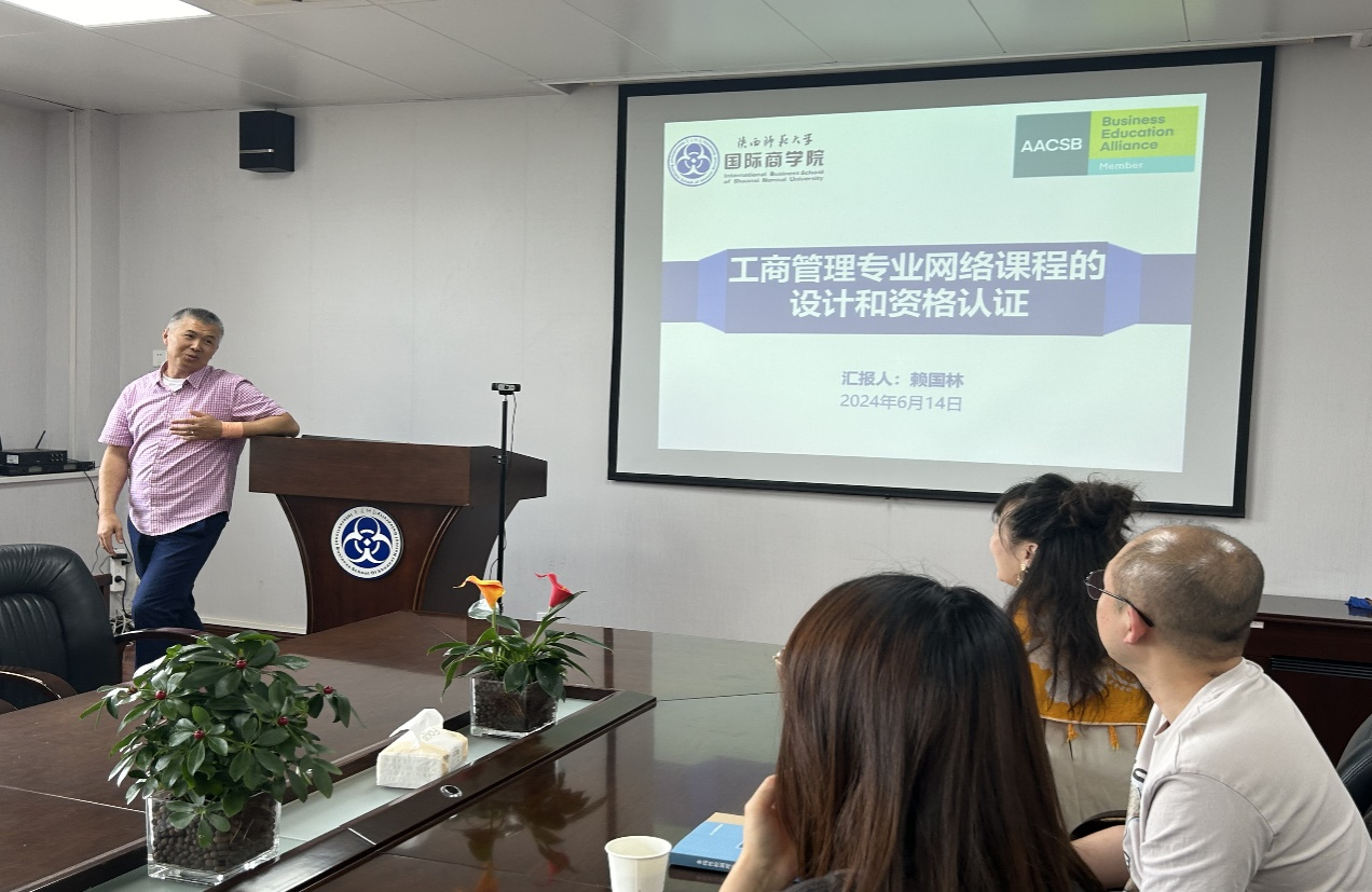 2024年6月14日上午,公司特邀美国路易斯安娜大学商公司赖国林教授在长安校区文澜楼1329举办了“工商管理专业网络课程的设计和资格认证”与“商公司基于ChatGPT的人工智能应用创新”的专题学术讲座,公司师生到场交流学习,讲座由兰娟丽副研究员主持。