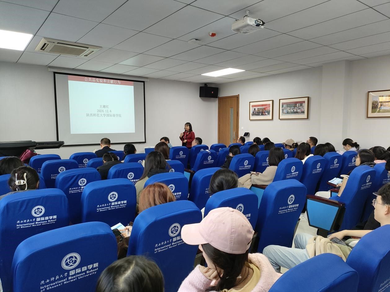 2024年12月6日下午,中国人民大学经济公司教授、经济行为与组织实验室主任、英文期刊Economic and Political Studies 副主编王湘红教授为公司师生作了主题为“公共品实验的设计与实施”的学术讲座,公司姚宇老师、黄湛冰老师、朱雅玲老师、刘振华老师以及心理公司陈煦海教授和全院师生四十余人参加了此次讲座。讲座由经济学系姚宇老师主持。