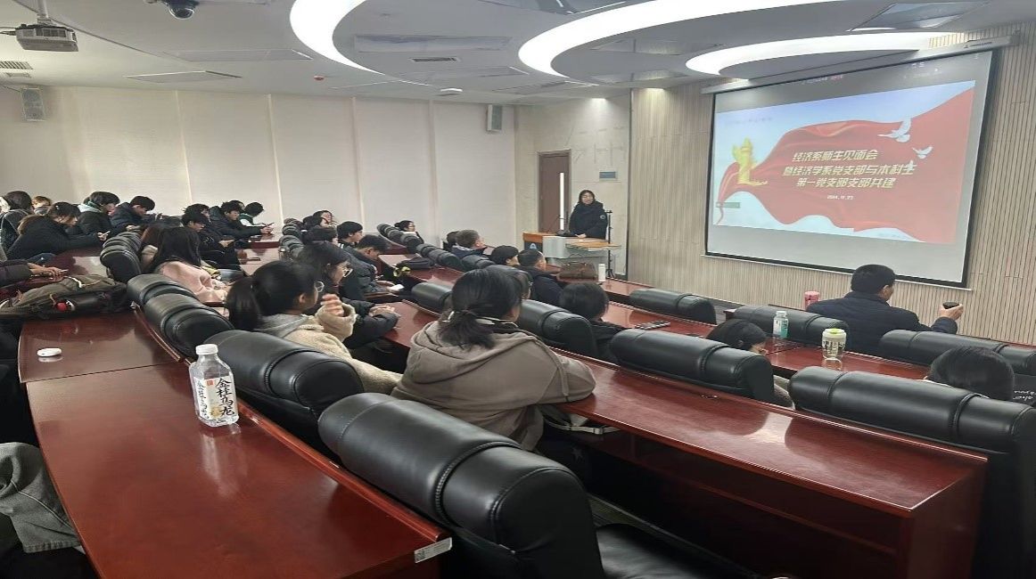 20241223日,经济学系在文澜楼1101教室开展师生见面会活动,王兆萍、程宝良、沈剑、毕超、史恒通、朱雅玲老师与2024级经济学类员工参加了本次交流活动,本次活动也是经济学系党支部与本科生第一党支部支部的共建活动。